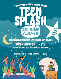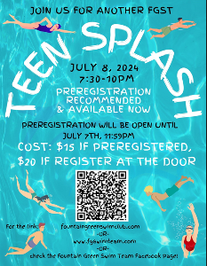 July Teen Splash is right around the corner! Save $5 by preregistering at the following link: https://forms.office.com/r/WJDY7iwmHv