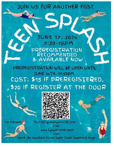 Our first Teen Splash of the season is this Monday, June 30th. Save $5 on admission by pre-registering at the following link: HERE.